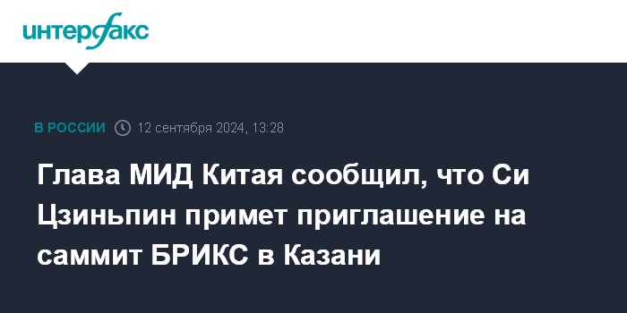 Глава МИД Китая сообщил, что Си Цзиньпин примет приглашение на саммит БРИКС в Казани