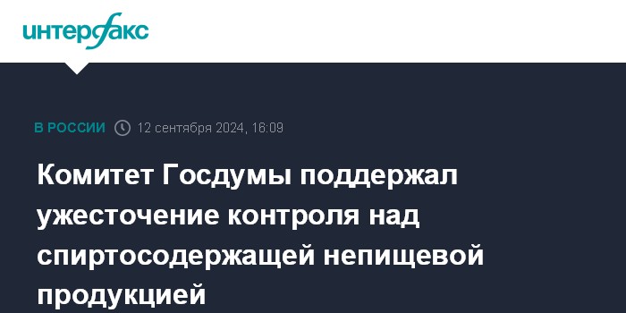 Москва. 12 сентября. INTERFAX.RU - Комитет Госдумы по экономической политике поддержал законопроект об обязательной маркировке в России спиртосодержащей непищевой продукции с содержанием этилового спирта более 10%, но указал на необходимость внесения изменений в протокол о конкуренции договора о Евразийском экономическом союзе.