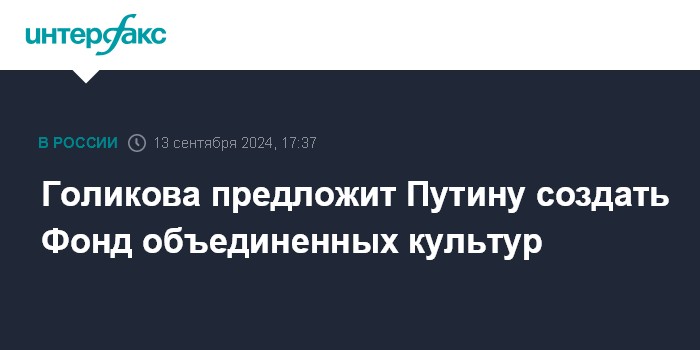 "О возможности проработки вопроса создания Фонда объединенных культур (...) по завершению нашего форума я непременно обращусь к президенту нашей страны Владимиру Владимировичу Путину, мы с (министром культуры Любимовой - ИФ) Ольгой Борисовной напишем соответствующий доклад", - сказала вице-премьер.