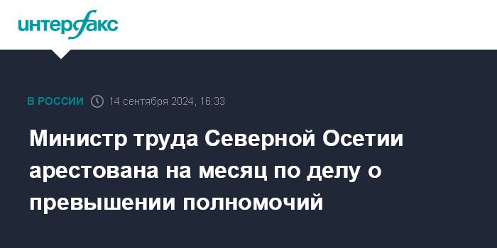 Министр труда Северной Осетии арестована на месяц по делу о превышении полномочий