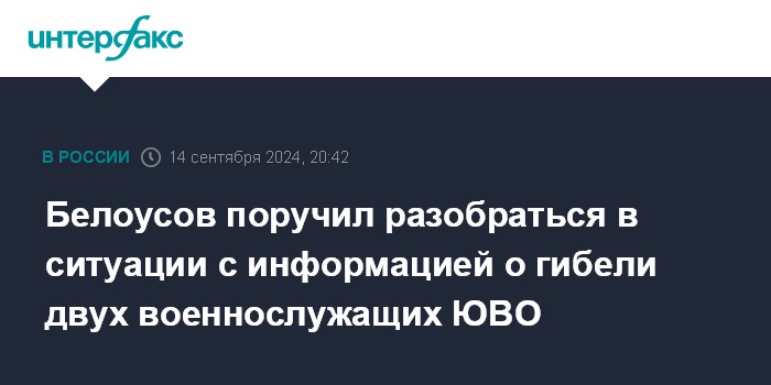 Белоусов поручил разобраться в ситуации с информацией о гибели двух военнослужащих ЮВО