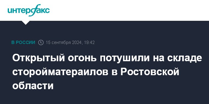Открытый огонь потушили на складе сторойматераилов в Ростовской области