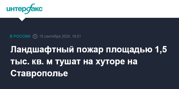 За воскресенье это уже второй ландшафтный пожар, который тушат на Ставрополье. Днем 15 сентября в дачных поселках в окрестностях Ставрополя загорелась сухая растительность, а также одна хозпостройка. Ситуацию осложнял сильный ветер, была угроза распространения огня. В 18:05 была объявлена локализация пожара в трех садовых товариществах "Дубки", "Строитель", "Швейник" на общей площади 14 га. Его тушение продолжается.
