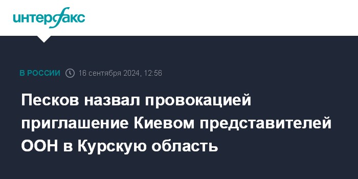 Песков назвал провокацией приглашение Киевом представителей ООН в Курскую область