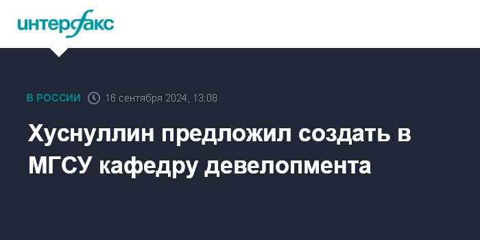 Москва. 16 сентября. INTERFAX.RU - Вице-премьер Марат Хуснуллин предложил создать в Московском государственном строительном университете кафедру девелопмента и выразил готовность там преподавать.
