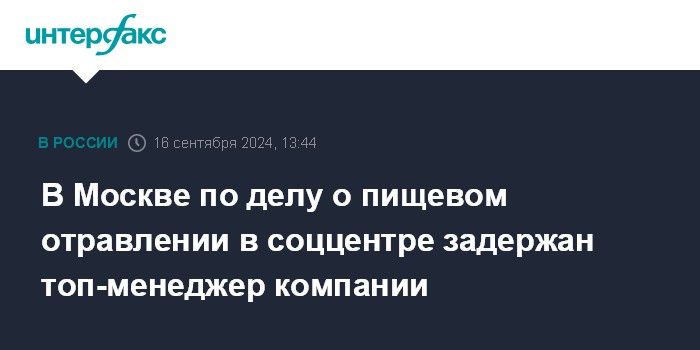 В Москве по делу о пищевом отравлении в соццентре задержан топ-менеджер компании