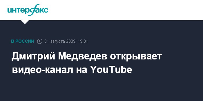 Москва. 31 августа. INTERFAX.RU – Во вторник, 1 сентября, на видео-хостинге YouTube начнет работу канал президента России Дмитрия Медведева. В своем первом видеообращении на сайте www.youtube.com/kremlin президент поздравит школьников, студентов, учителей и преподавателей с Днём знаний, сообщает пресс-служба компании Google, которая владеет сервисом YouTube.
