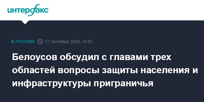 "Андрей Белоусов обсудил с руководителями трёх регионов ход реализации комплекса мер по решению вопросов защиты населения и инфраструктуры приграничных территорий, поступающих в оперативную группу Координационного совета", - говорится в сообщении.