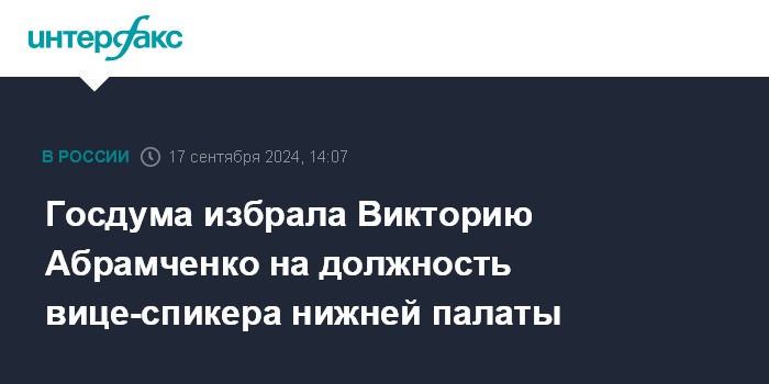 Госдума избрала Викторию Абрамченко на должность вице-спикера нижней палаты