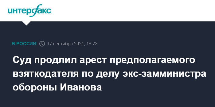 Суд продлил арест предполагаемого взяткодателя по делу экс-замминистра обороны Иванова