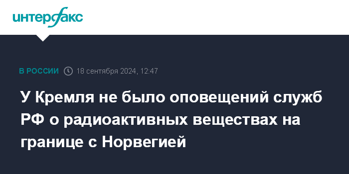 У Кремля не было оповещений служб РФ о радиоактивных веществах на границе с Норвегией