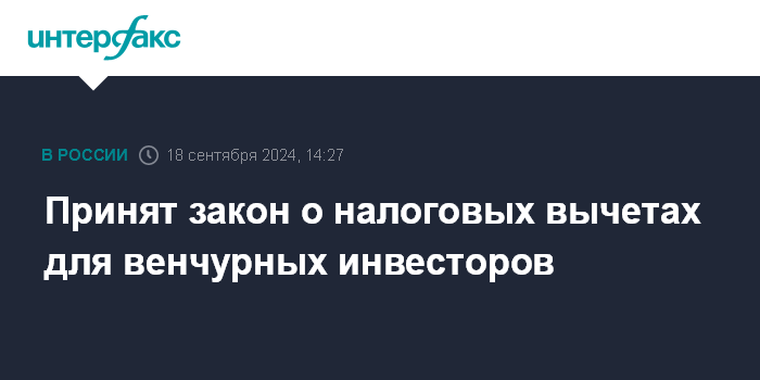 Принят закон о налоговых вычетах для венчурных инвесторов