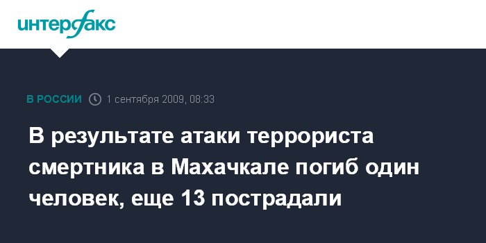 В результате атаки террориста смертника в Махачкале погиб один человек, еще 13 пострадали