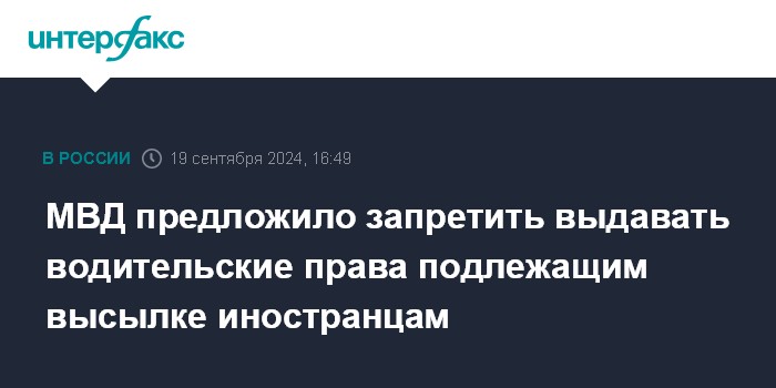 "Предлагается установить к иностранному гражданину, в отношении которого применяется режим высылки, ограничительные меры в виде отказа в допуске к сдаче экзаменов на право управления транспортными средствами и выдаче российского национального или международного водительского удостоверения", - написала в Telegram представитель министерства Ирина Волк.