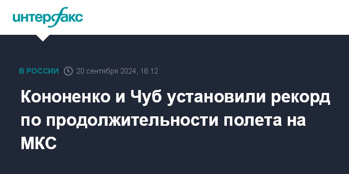 В 16:06:51 по московскому времени Кононенко и Чуб превысили достижение космонавтов Сергея Прокопьева, Дмитрия Петелина и астронавта Франциско Рубио, которые с сентября 2022 года по сентябрь 2023 года провели на МКС 370 суток 21 час 22 минуты 16 секунд.