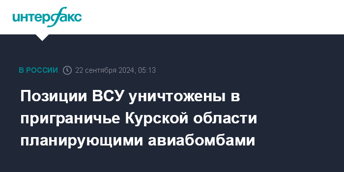 Позиции ВСУ уничтожены в приграничье Курской области планирующими авиабомбами