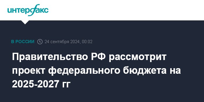 Правительство РФ рассмотрит проект федерального бюджета на 2025-2027 гг