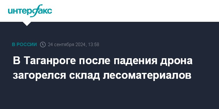 Москва. 24 сентября. INTERFAX.RU - В промышленной зоне Таганрога после падения БПЛА загорелся склад лесоматериалов, сообщил в Telegeram губернатор Ростовской области Василий Голубев.