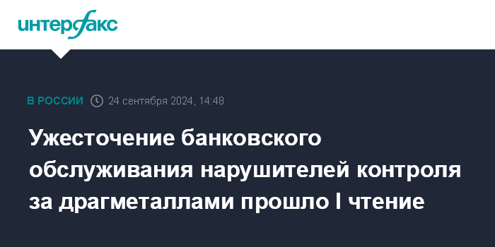 Ужесточение банковского обслуживания нарушителей контроля за драгметаллами прошло I чтение