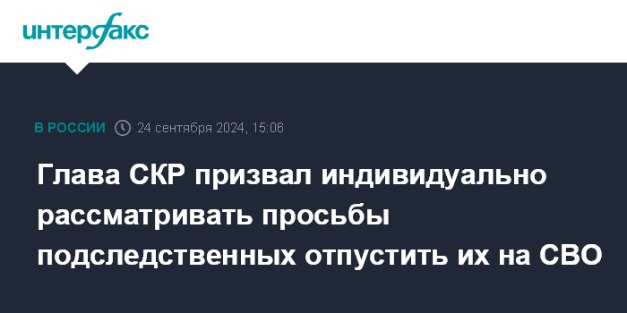 Глава СКР призвал индивидуально рассматривать просьбы подследственных отпустить их на СВО
