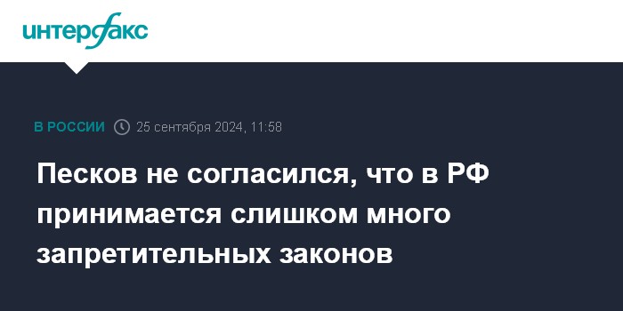 Песков не согласился, что в РФ принимается слишком много запретительных законов