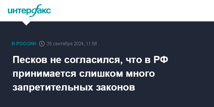 Так он ответил на вопрос, не считают ли в Кремле, что в России принимается слишком много запретительных законов.