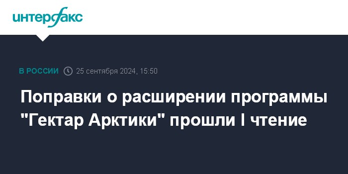 Поправки о расширении программы "Гектар Арктики" прошли I чтение