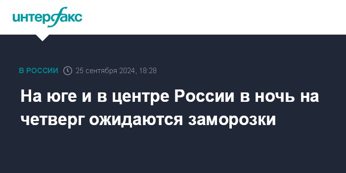 На юге и в центре России в ночь на четверг ожидаются заморозки