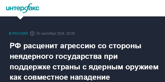 РФ расценит агрессию со стороны неядерного государства при поддержке страны с ядерным оружием как совместное нападение