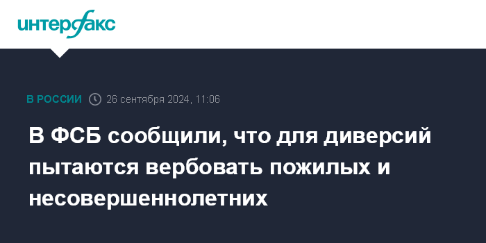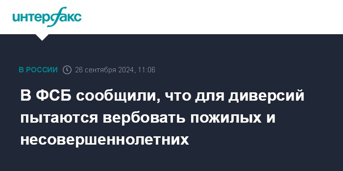В ФСБ сообщили, что для диверсий пытаются вербовать пожилых и несовершеннолетних