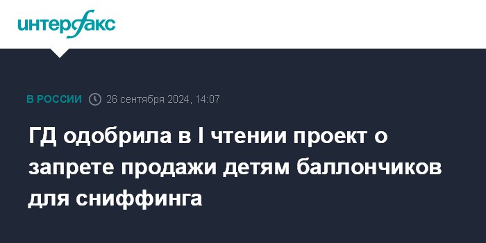 ГД одобрила в I чтении проект о запрете продажи детям баллончиков для сниффинга