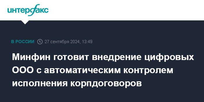 Минфин готовит внедрение цифровых ООО с автоматическим контролем исполнения корпдоговоров