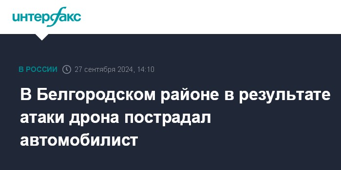 Москва. 27 сентября. INTERFAX.RU - В Белгородском районе в селе Петровка дроны атаковали два ехавших автомобиля, водитель одного из них ранен, сообщил губернатор Белгородской области Вячеслав Гладков.