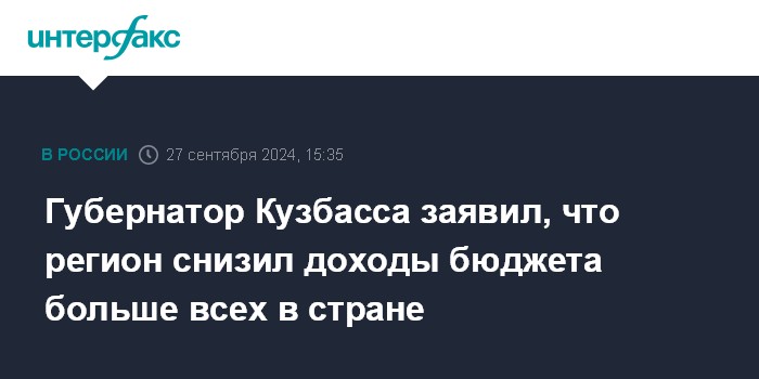 Губернатор Кузбасса заявил, что регион снизил доходы бюджета больше всех в стране