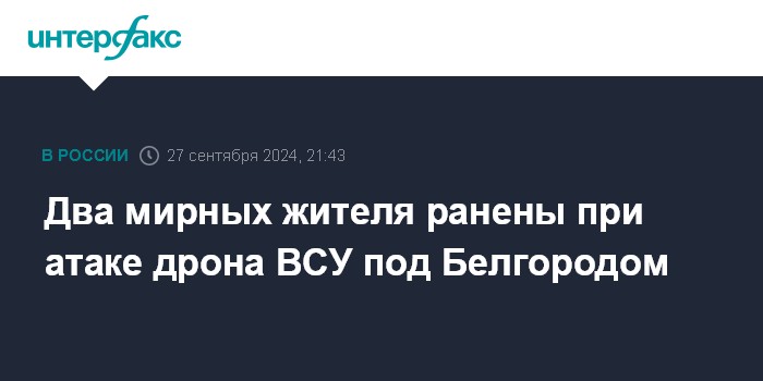 Москва. 27 сентября. INTERFAX.RU - Губернатор Белгородской области Вячеслав Гладков сообщил об атаке украинского дрона в Белгородском районе, в результате которой пострадали два человека.