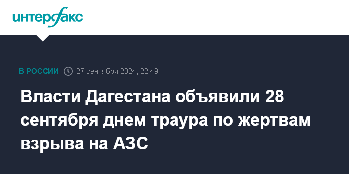Власти Дагестана объявили 28 сентября днем траура по жертвам взрыва на АЗС