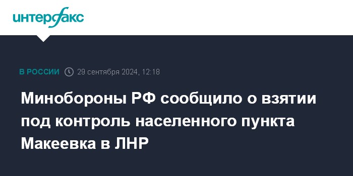 Минобороны РФ сообщило о взятии под контроль населенного пункта Макеевка в ЛНР