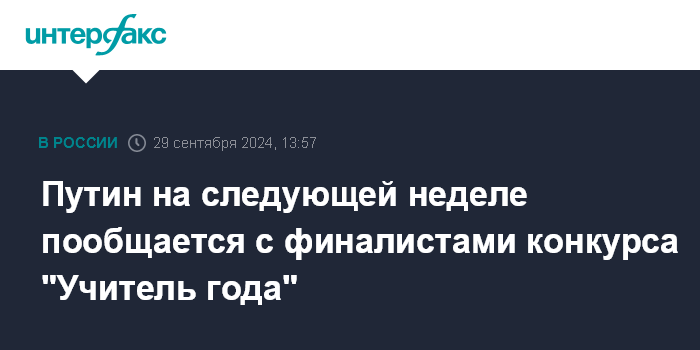 Путин на следующей неделе пообщается с финалистами конкурса "Учитель года"