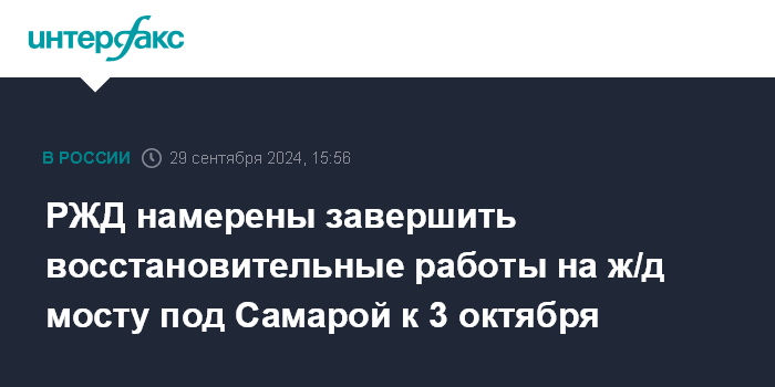 РЖД намерены завершить восстановительные работы на ж/д мосту под Самарой к 3 октября