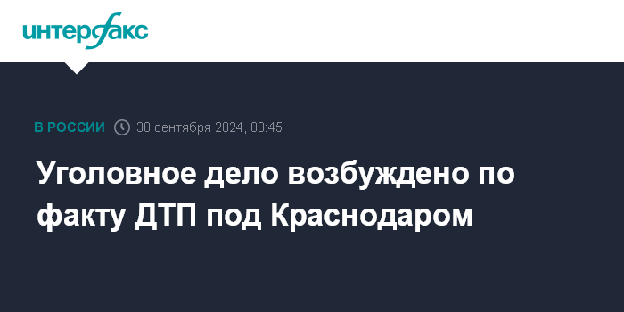 Уголовное дело возбуждено по факту ДТП под Краснодаром