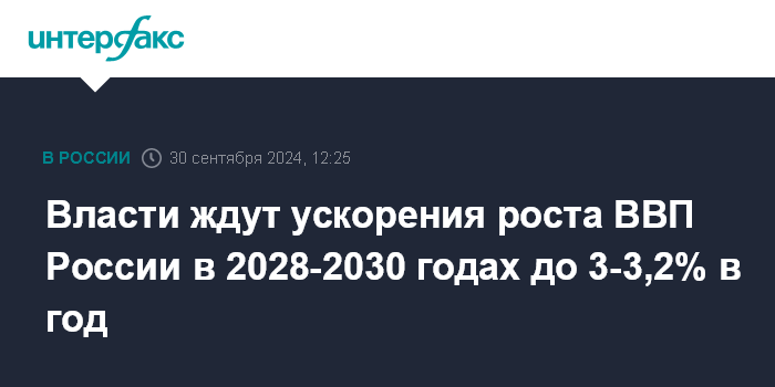 Власти ждут ускорения роста ВВП России в 2028-2030 годах до 3-3,2% в год