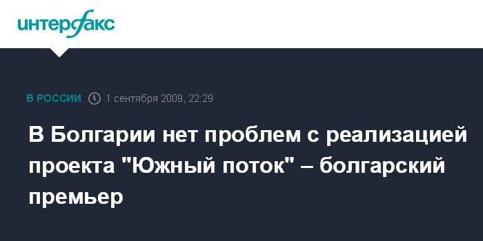 Сопот (Польша). 1 сентября. ИНТЕРФАКС - Болгария не видит проблем в реализации проекта газопровода "Южный поток", заявил во вторник премьер-министр Болгарии Бойко Борисов.