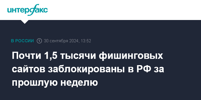 Почти 1,5 тысячи фишинговых сайтов заблокированы в РФ за прошлую неделю