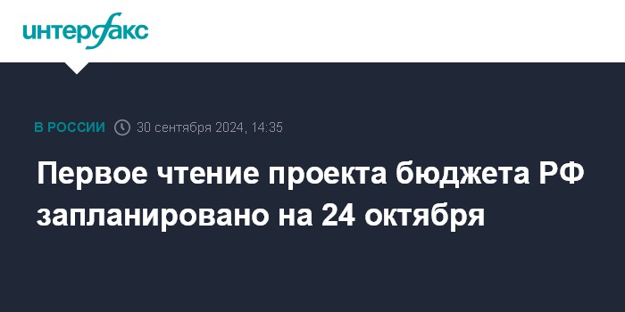 Первое чтение проекта бюджета РФ запланировано на 24 октября