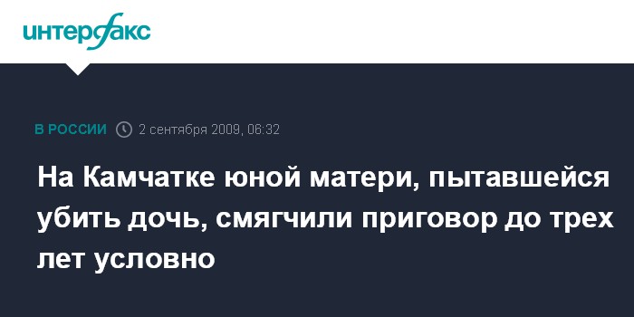 Петропавловск-Камчатский. 2 сентября. ИНТЕРФАКС-ДАЛЬНИЙ ВОСТОК - Камчатский краевой суд по инициативе гособвинителя смягчил наказание несостоявшейся детоубийце, сообщил в среду агентству "Интерфакс-Дальний Восток" представитель суда.