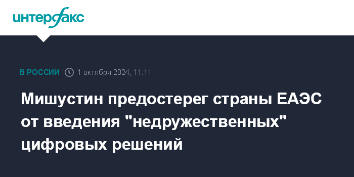 Мишустин предостерег страны ЕАЭС от введения "недружественных" цифровых решений