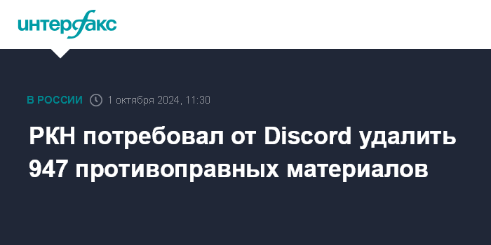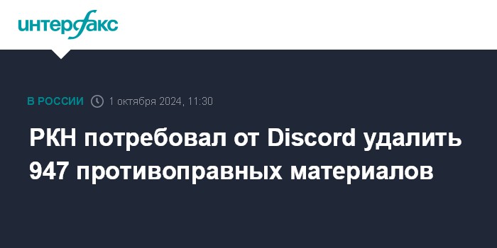 "Роскомнадзор направил в общей сложности администрации Discord Inc требования удалить 947 противоправных материалов, в том числе содержащих детскую порнографию, призывы к экстремизму, вовлечение несовершеннолетних в совершение противоправных действий, призывы к самоубийству, пропаганду ЛГБТ, пронаркотический контент. На сегодняшний день ряд интернет-страниц с такими материалами так и не удалены", - говорится в сообщении ведомства, поступившем в "Интерфакс".