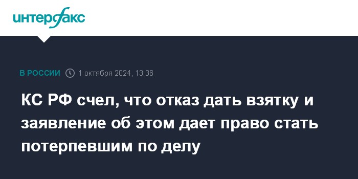 КС РФ счел, что отказ дать взятку и заявление об этом дает право стать потерпевшим по делу