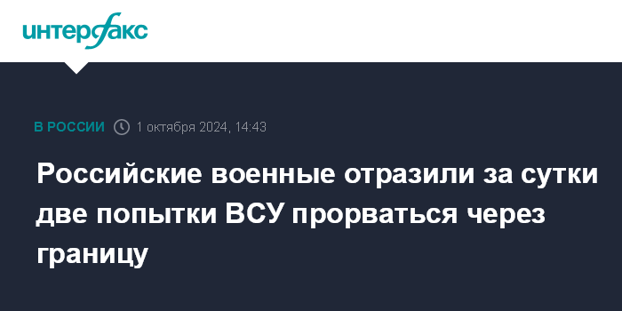 Москва. 1 октября. INTERFAX.RU - Войска группировки "Север" на курском направлении за сутки отразили две попытки вооружённых сил Украины прорваться через российскую границу, отразили две контратаки противника, сообщает министерство обороны РФ во вторник.