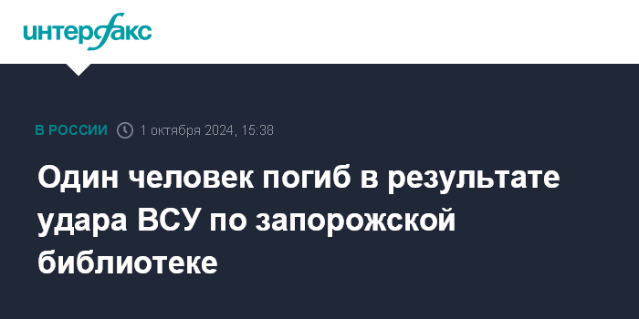 Один человек погиб в результате удара ВСУ по запорожской библиотеке